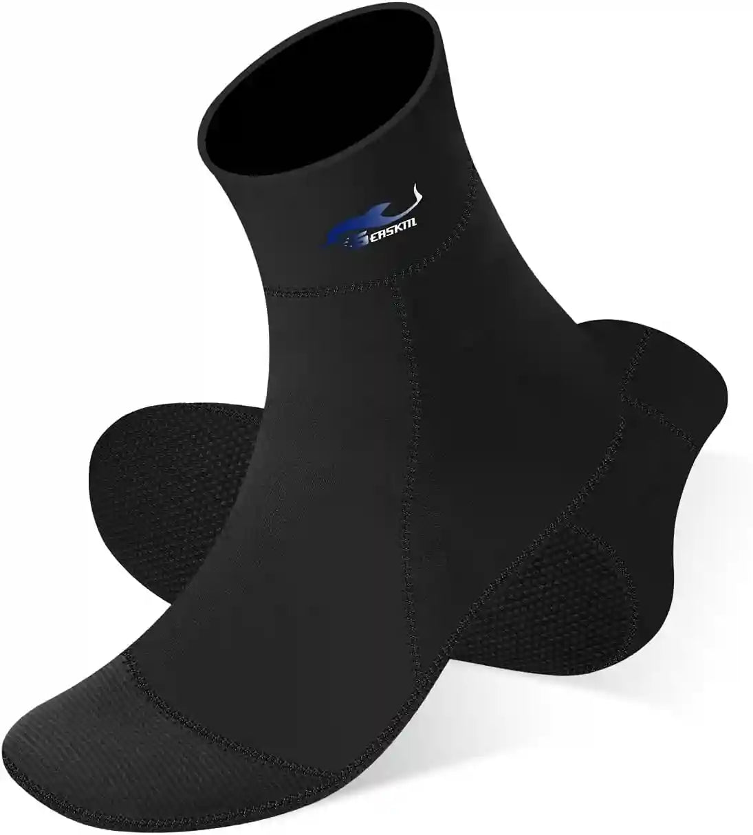 Keep little feet warm, safe, and ready for adventure! These kids neoprene socks are crafted from soft, stretchy 3mm neoprene that provides insulation and comfort in cool water. Whether it's a beach day, snorkeling trip, or poolside fun, they shield tender skin from hot sand, sharp shells, and slippery rocks.