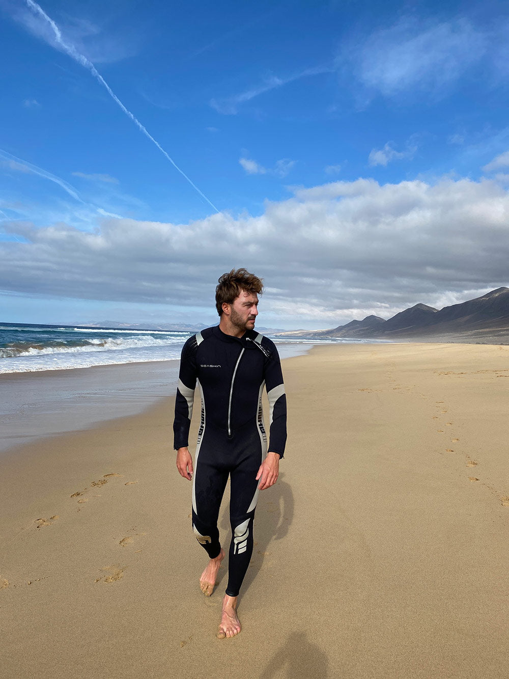 Mens front zip wetsuit should fit snugly and tight to the body, thus to keep the body heat when you submerge yourself in the water, it felt like you had an armor against the cold. you should get a ideal fit after several times uses.