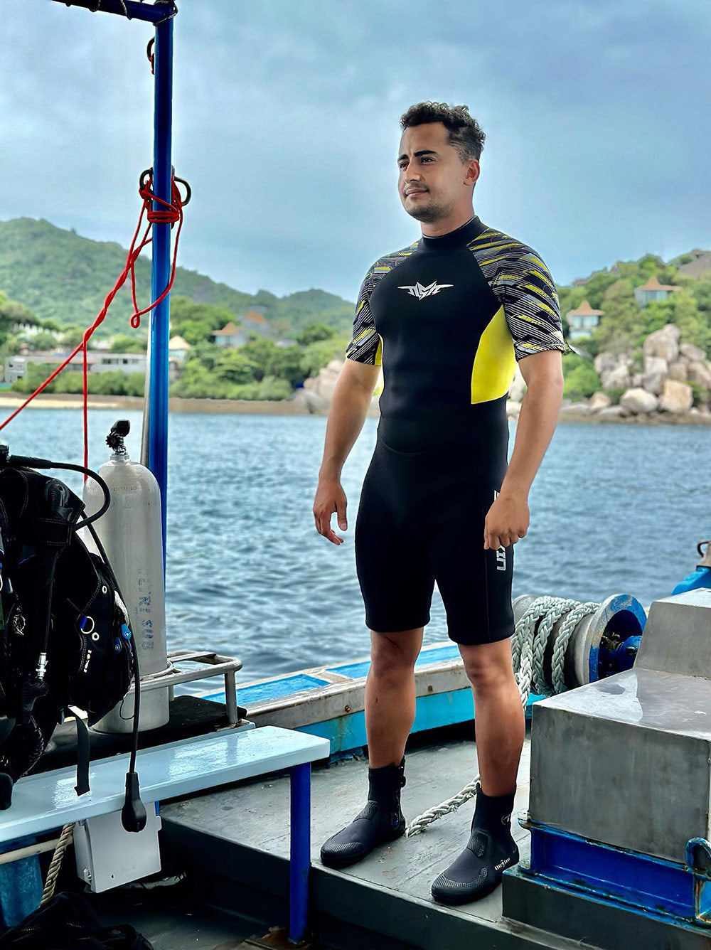 Looking for the perfect companion to amplify your aquatic escapades? Look no further than our Mens Shorty Wetsuit, meticulously designed to turn your water adventures into unforgettable experiences. Crafted with the utmost precision and innovation, this wetsuit is here to redefine your relationship with the waves.