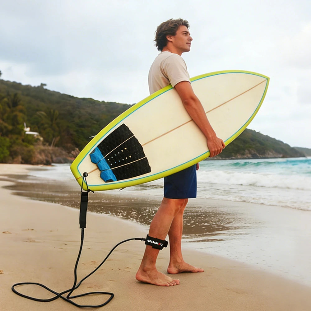 This surf leash securely attaches you to your surfboard, giving you peace of mind while surfing. The durable construction ensures the leash won't break, allowing you to focus on surfing and confidently enjoy the water.