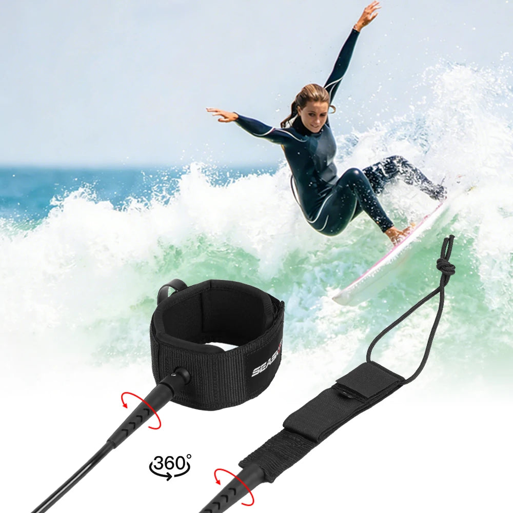 This 6ft surf leash is made from high-strength materials and features corrosion-resistant hardware, able to withstand the harsh conditions of saltwater, sun, and waves. Lightweight yet robust, it's a reliable companion for every surfing adventure.